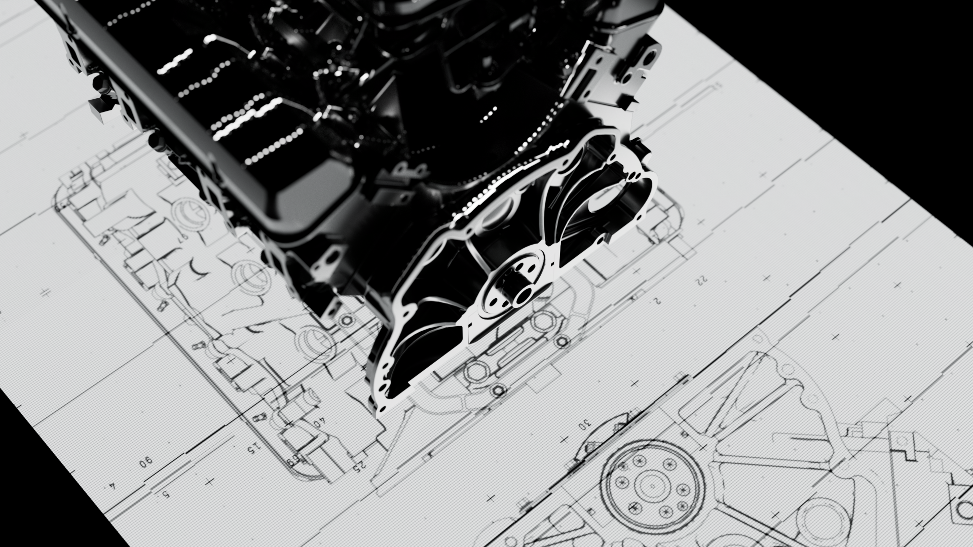 Brand visuals for Fabrion, an AI-native platform for the new industrial era. Sleek industrial forms and minimal data HUDs create a restrained, futuristic motion language for next-gen manufacturing.