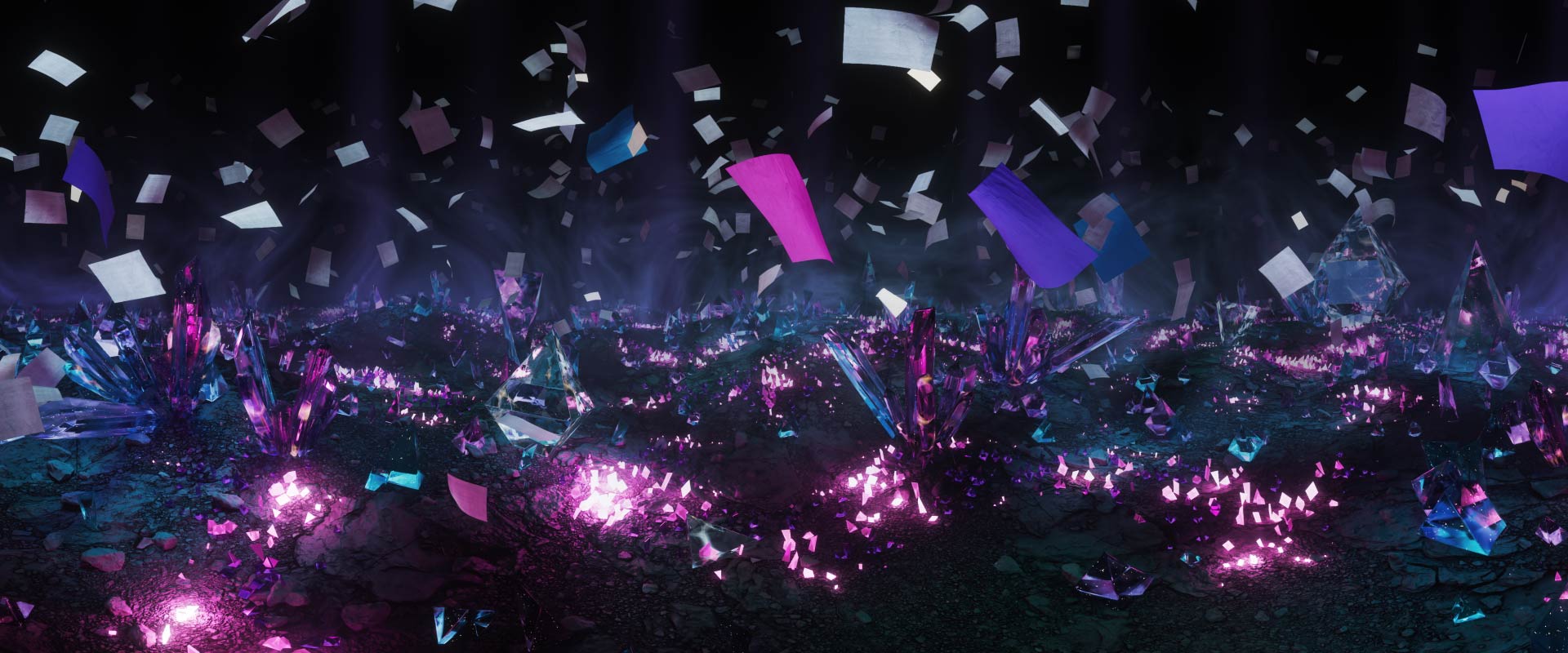 In collaboration with Mikael Brandrup, this installation translates his painted works into immersive, evolving environments.